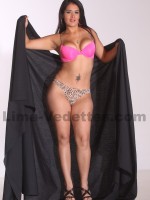 Sesión de fotos con la voluptuosa bailarina peruana Shamira Terrazas con lencería rosada